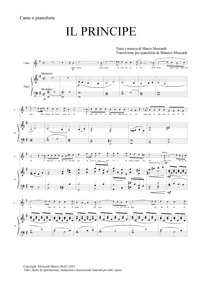 Nel 2003 mio padre arrangia una versione per banda de Il Principe e viene eseguita dalla Banda di Cagli nel Natale 2003.