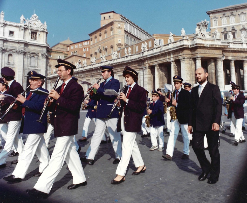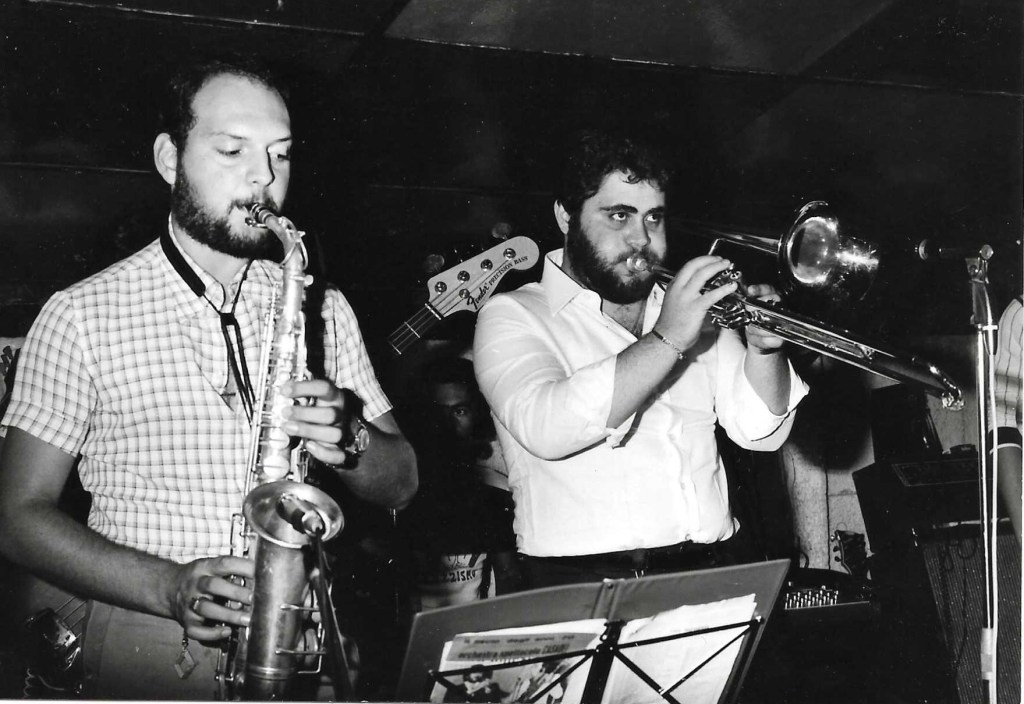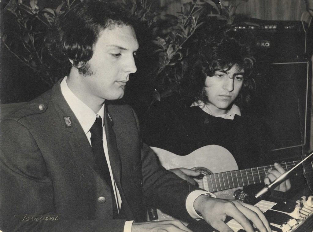 Io respiro musica in casa fin da piccolo. Ho in casa un pianoforte ed una chitarra che inizio a strimpellare. Poi qualche nota ed accordo in più. Nel frattempo frequento il corso di orientamento musicale per banda. Alla fine del corso “prendo lo strumento”. Io voglio la tromba, la banda ha bisogno del bombardino. Per me giovane suonare il bombardino è riduttivo, non mi appassiona. La tromba, poi dorata, che mio babbo ha comperato sarebbe la mia preferita. In banda serve il bombardino …. Continuo ancora un po’ e poi, prima di entrare in banda, smetto di frequentare il corso.