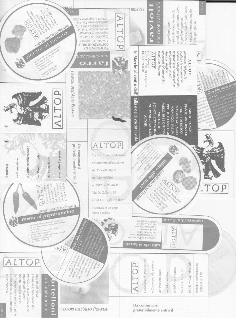 Nei primi anni ’90 costituisco un Consorzio di promozione della produzione tipica locale dal nome Al.Top., come Alto Pesarese ma anche come al top della produzione tipica. Con questo portiamo le eccellenze del Montefeltro a Strasburgo, a Rastat, a Parma, Roma, Milano e tante città italiane. Per oltre dieci anni un riferimento per tutti quei piccoli e medi produttori che da soli avrebbero faticato a farsi conoscere fuori dal proprio territorio. L’aquila di Federico, posta sopra un negozio storico del centro di Cagli, ne è il marchio.