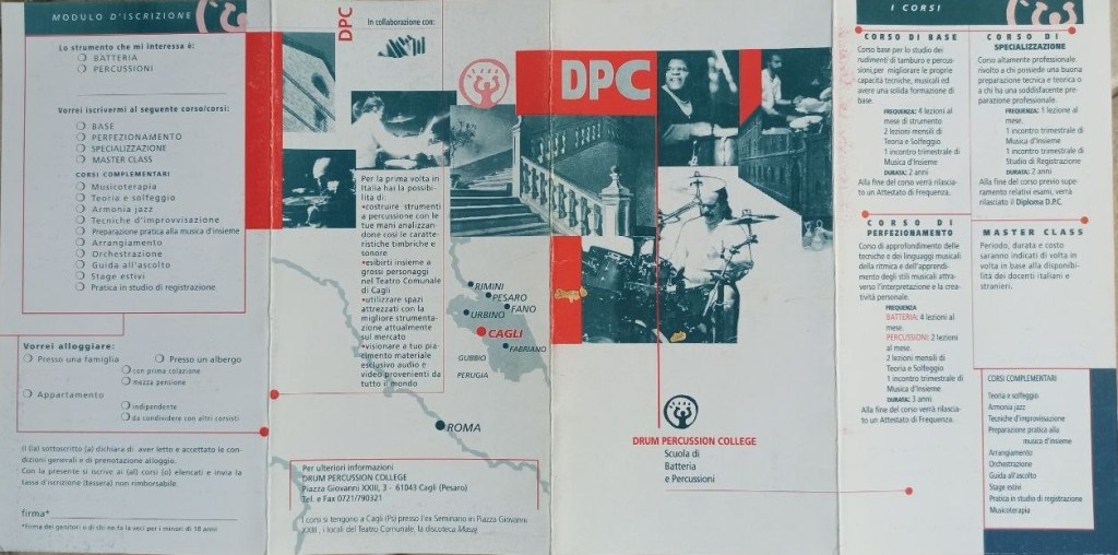 Apriamo con lui e Di Fonzo la Drum Percussion College, scuole di alta specializzazione per percussionisti e musica di gruppo. Docenti Antonio Maragono, Giulio Capiozzo (Area), Daniele Di Gregorio (Paolo Conte), Peppe Consolmagno ed altri. Master Class, corsi stabili, spettacoli, concerti internazionali.