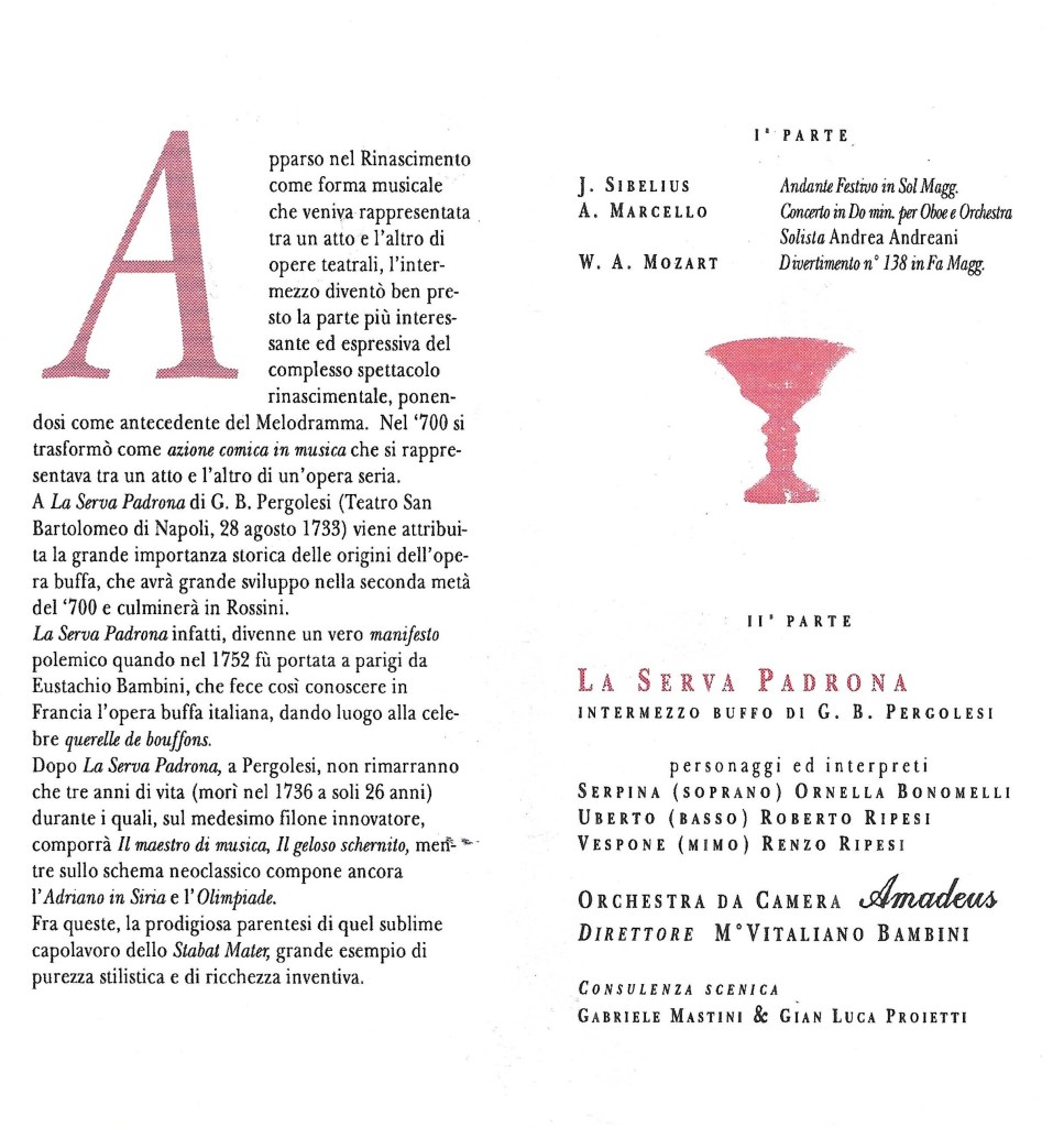 1994 Accademia Lirica Internazionale del Teatro Comunale di Cagli