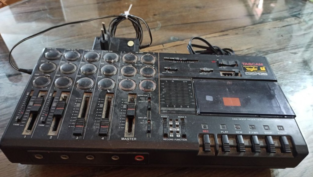 Allora iniziavo a fare le demo con il mio Dokorder 4 piste simultanee, mezzo avanzatissimo per l’epoca. Poi se volevi essere ancora più professionale dovevi andare in sala di registrazione dove il nastro (pur sempre nastro) era alto più del doppio.
